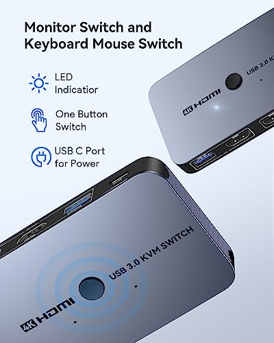 【Easy Switch & Greater Compability】 Easily switch between 2 displays with a single click on the button or wired controller. This KVM switches works with greater compatibility(we have updated the usb ports to usb 3.0-which improve the data transfer stability), driver-free for Windows 10/8/8.1/7/Vista/XP and Mac OS, Linux, and Chrome OS, simply plug and play, No external power required.