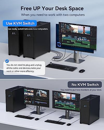 【Free UP Your Desk Space】ABLEWE kvm switch save your desk space when you need to use two computers,you can easily switch between 2 computers and usb devices without all the clutter. No need to plug and unplug hdmi cable and usb cable back and forth anymore,making your work much more convenient and efficient.