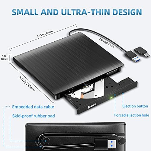 Ziweo USB 3.0 & Type-C external optical cd/dvd drive buner is perfect companion for laptop or desktop without internal DVD drive.Plug and play,no need any additional software and extra power supply.High Speed Type C and USB 3.0 CD DVD RW Burner.Emergency Eject Hole, Pop-up button and disc tray design makes it convenient to read or write discs.